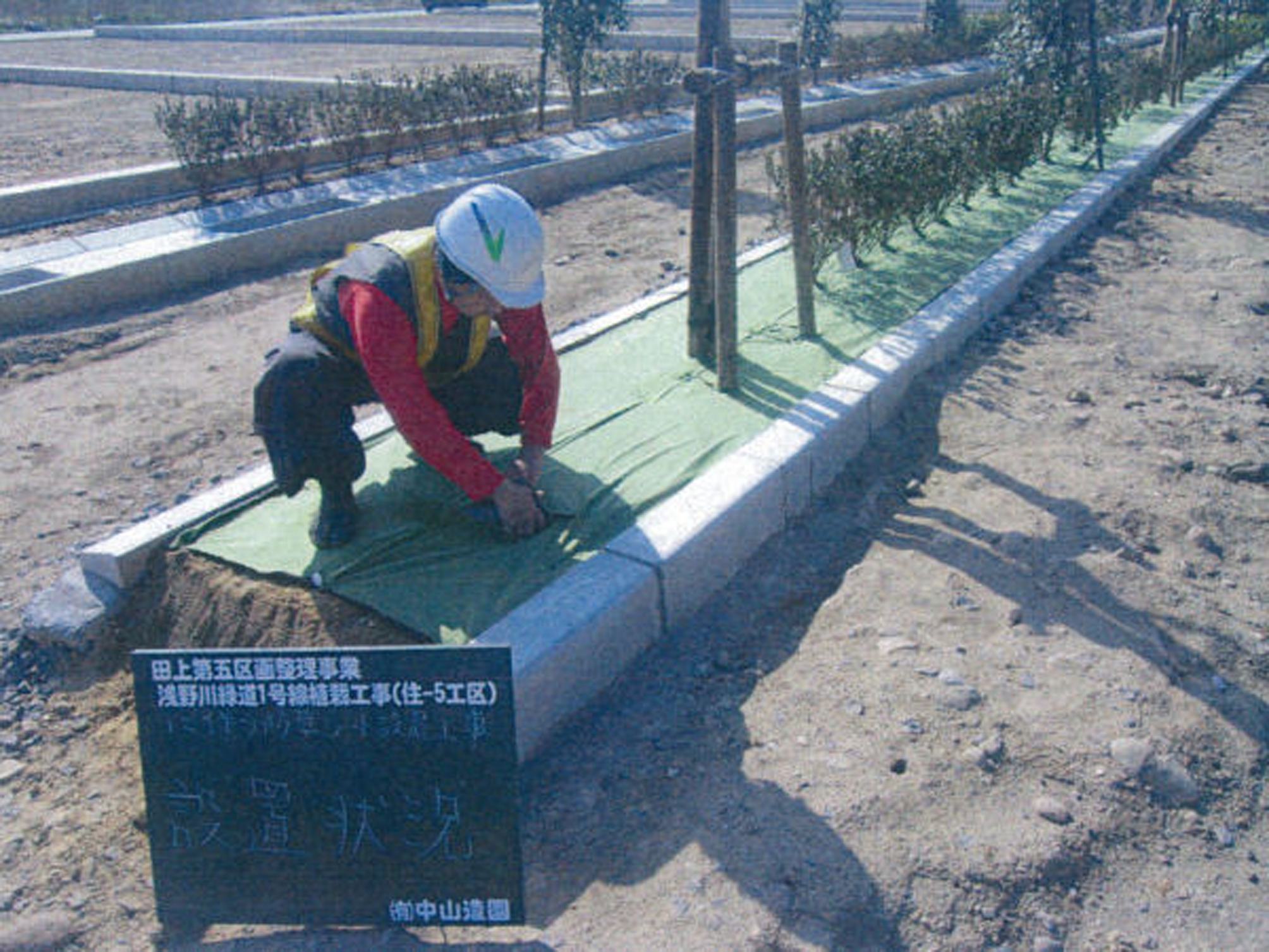 ・機械除草工を、植物由来の生分解性素材の防草シートにした。