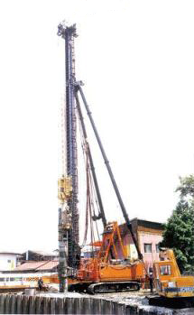 ・従来技術では、鋼管杭を圧入する際、油圧ハンマやディーゼルハンマを用いた打撃工法、アースオーガを用いた中堀工法、バイブロハンマを用いた振動工法により、鋼管矢板を打ち込んでいましたが、振動、騒音が大きく、周辺環境に多大な影響を及ぼしたり、機械転倒等安全性にも重大な問題があった。本技術は軽量コンパクトな油圧式杭圧入引抜機で鋼管矢板を圧入する為、低振動、低騒音で施工が可能となり、既設杭を2本のクランプでつかみ、既設杭上を自走(前進及び後退)する為、吊り移動をすることなく安全な施工が可能。