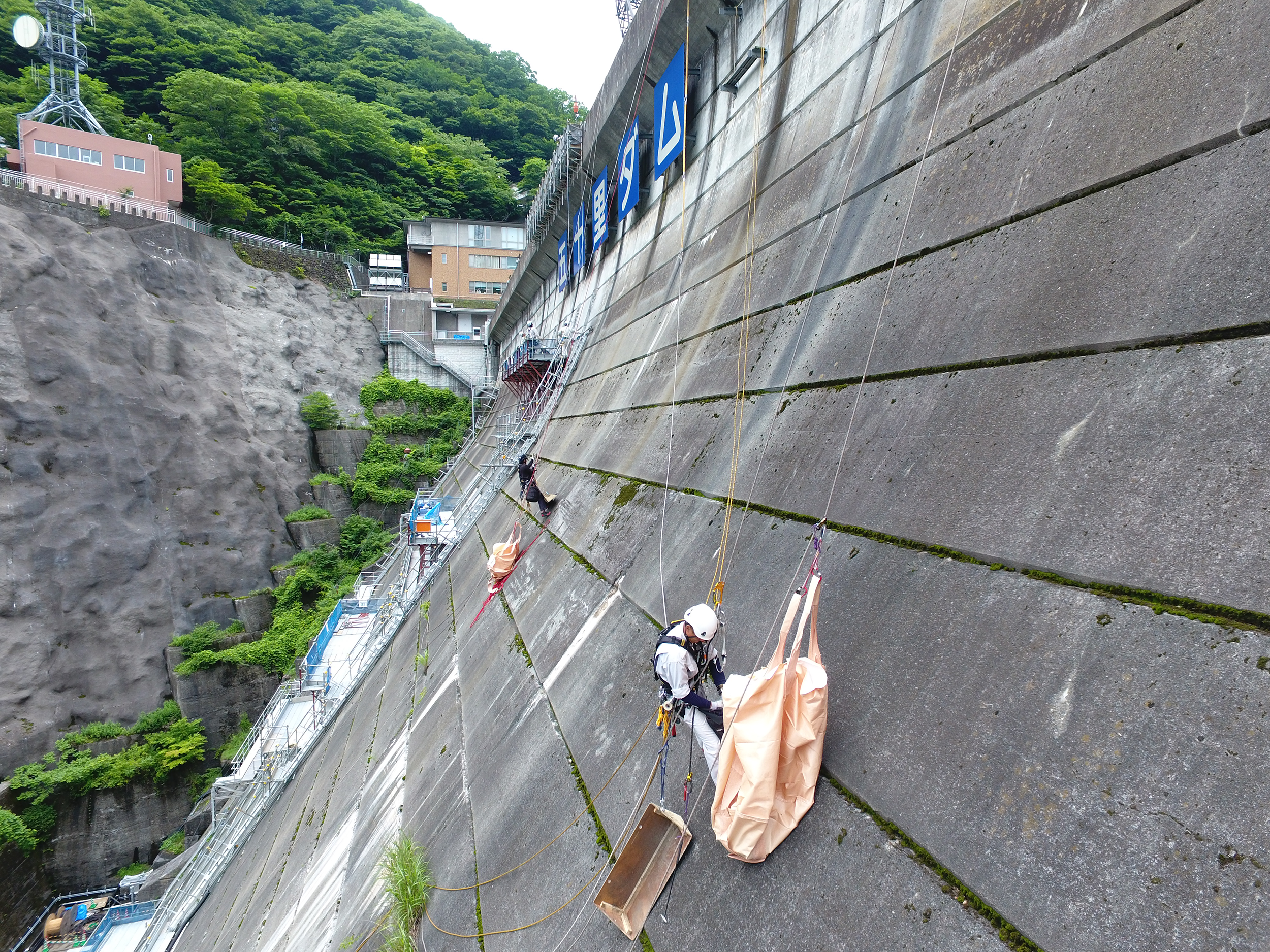 ・ロープ切断対策資材(バックアップロープ、特殊ロープガード、帆布製特大ロープガード、ダブルロープバッグ等)を活用することにより、ロープアクセス技術の安全性を高めた。
