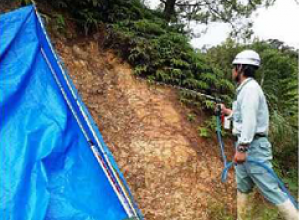 ・土壌面への付着障害を起こしたり、吹付直後の資材が流失したりするため、強風下、降雨・降雪直後や降雨・降雪中の施工は避ける。
