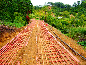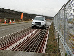 仮設道路をアスファルト舗装から、鋼製のGAロードマットに変えた。