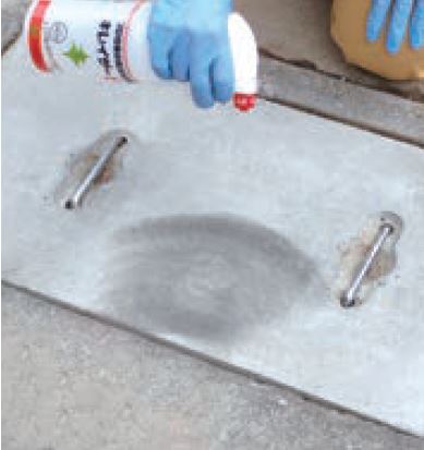 舗装面、歩車道ブロック、重機等に付着したタイヤ痕・サビ・油汚れの洗浄を、従来の紙やすりの削りやベンゼン・軽油・灯油などの洗浄剤から、界面活性剤主体型の水系洗浄剤に変えた。