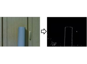 ・杭の鉛直度はPCのアプリケーションにより、画像の2値化処理を手動で施し、杭の画像のエッジ検出によって、杭の傾きを数値化する。