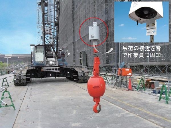 ・警報音で作業員に吊荷接近を知らせることにより、吊り荷物の落下による事故を防止できるため、安全性が向上する。