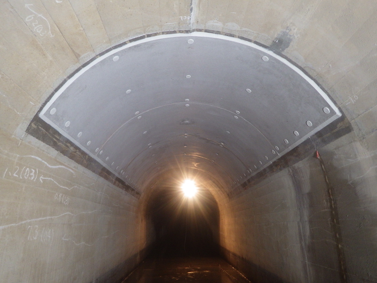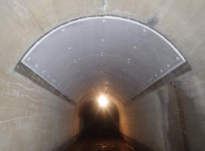 高伸度型シートとウレタン樹脂を用いたトンネル小片はく落対策工法。