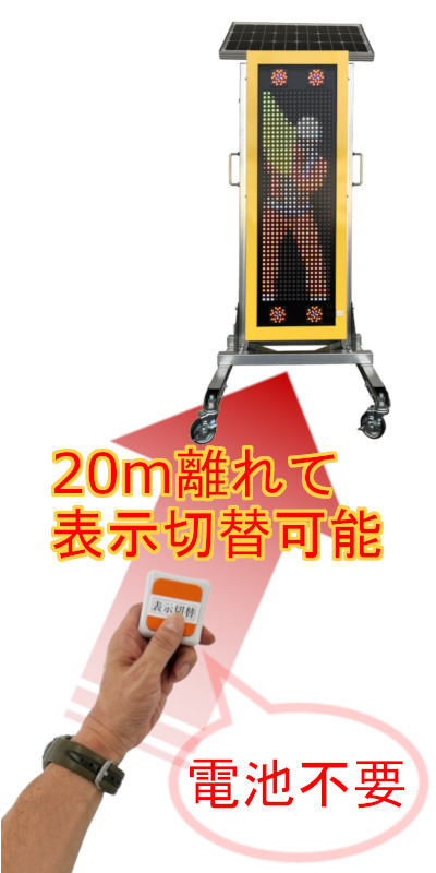 工事用LED表示機の表示切替機能を自己発電型無線スイッチに変更したことにより、