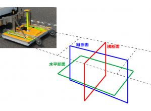 ・電磁波の送信アンテナと受信アンテナを横断方向に複数個並べたことにより、一度の測定で幅約1.5m分のデータを取得できるため、調査の効率化により経済性向上が図れる。