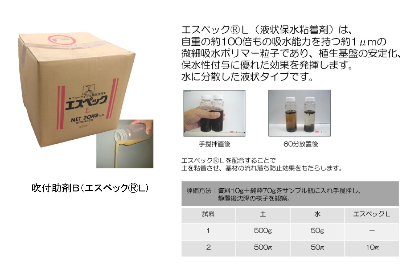 ・添加剤により勾配のある法面にも付着し、侵食や崩落に強い。