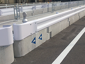 擁壁構造物や補強土擁壁などの上部に車両の安全対策用たわみ性防護柵を設置するためのプレキャスト製...