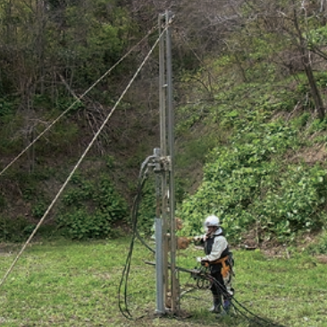・掘削機(エアーハンマー)の設置可能箇所。必要スペース1.0m×1.0m程度(斜面の傾斜や平場のスペースにより異なる)。