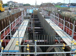 鋼板プレストレス強化工法を採用し、覆工板を4.0mに長スパン化したことで開口部の拡大、桁材の省力化、作業の効率化が図られ、工事コストの縮減を可能にした。