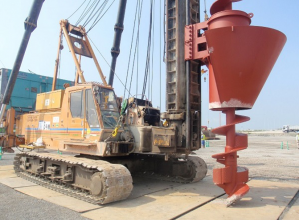 締固め機能付き回転貫入体を用いて、地盤を静的に圧縮し減容化する技術