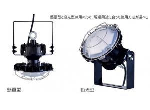 照明の光源を長寿命、省電力の80W LEDにした製品技術であり、かつ投光型、懸垂型2種類の用途が選べる。