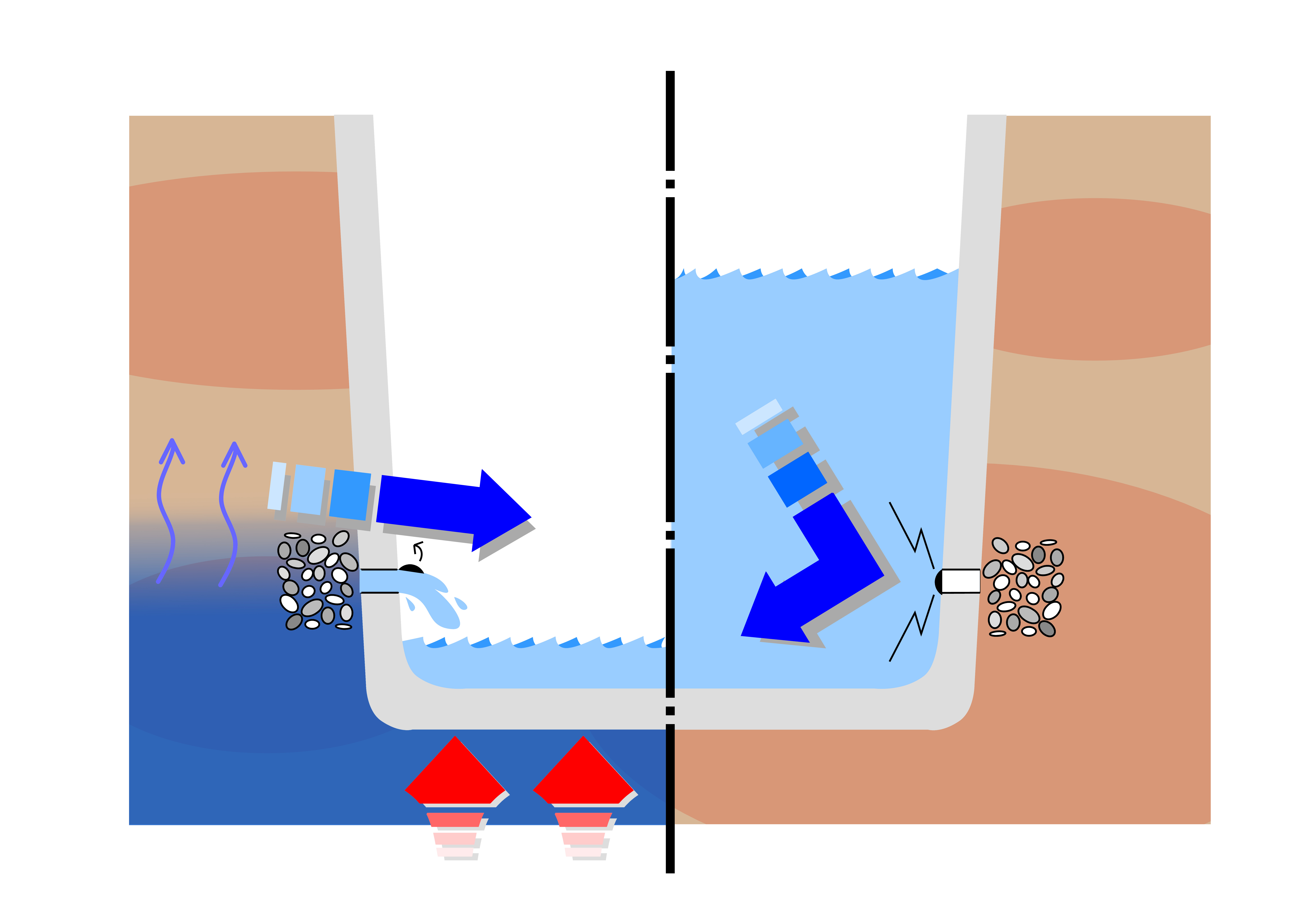 ・浮力対策:十分な吐水力で地下水による楊圧力を逃がし、水路の浮上・破壊を防止