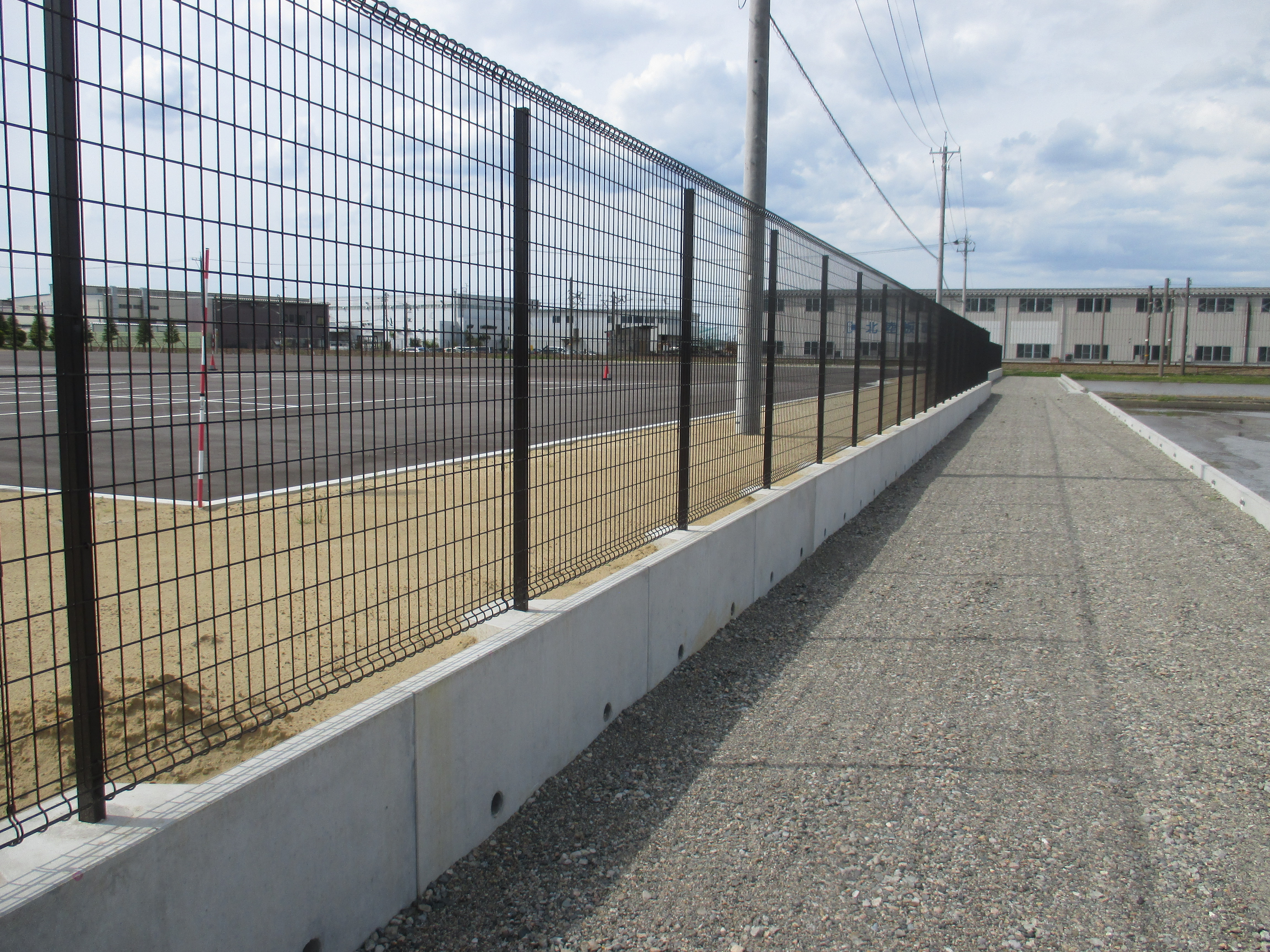 ・耐雪型ガードパイプやフェンス等の建込基礎が一体化されている。