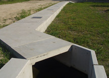 底面に大きな開孔を有する二面水路。魚などに配慮した環境型水路構築時、底面に浸透させたい時に有効。