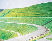 部材相互のはめ込み結合により格子を組み、のり面にアンカーで固定する簡単・経済施工のリサイクルプ...